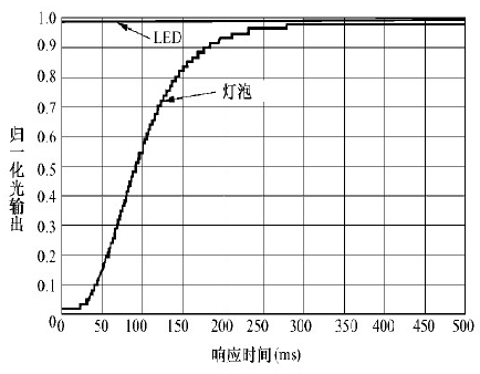 圖4 LED 與傳統光源點亮相應時間對比