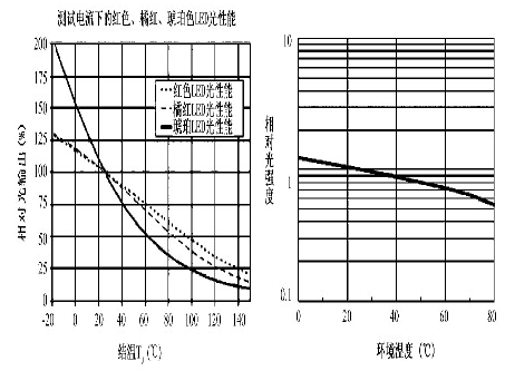 圖5 LED 發光性能與結溫、環境溫度的關系