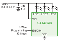 圖7:CAT4003B線性背光驅動器應用電路
