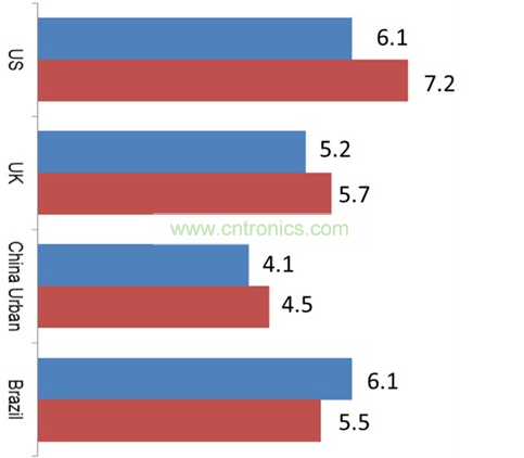 - 相較于美國或是歐洲國家等發達市場,新興市場如俄羅斯、巴西、墨西哥及中國的消費者更愿意新購或更替家中電視