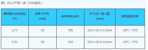 表1為村田制作所的EDLC產品一覽,圖4為使用了村田EDLC的LEDflach演示板。這個系統(tǒng)能在33毫秒內向LED提供最大為8A的大電流。(可控制在2A-8A/10-60毫秒)
