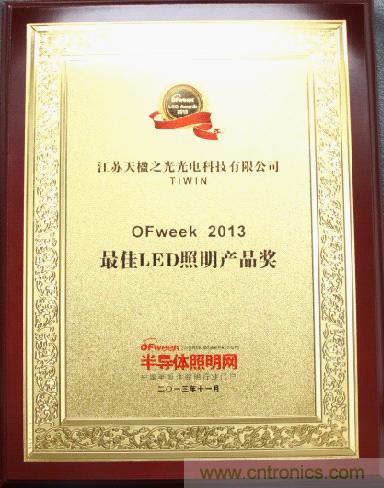 天楹之光成功奪得“最佳LED照明產品獎”