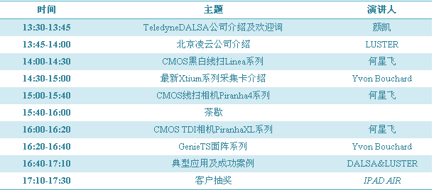 秉承客戶至上,以市場需求為導(dǎo)向,感謝一路上有新老客戶的陪伴支持與理解,才使得凌云公司在前進的道路上有足夠的動力與方向,看到了美好的視覺給人們帶來的豐富多彩的生活。此次答謝會得到了Teledyne DALSA的高度重視與支持,屆時,DALSA亞太區(qū)OEM技術(shù)總監(jiān)Yvon Bouchard、 DALSA線掃描產(chǎn)品資深產(chǎn)品經(jīng)理何星飛等大咖將會帶來國際前沿的技術(shù)與產(chǎn)品資訊: