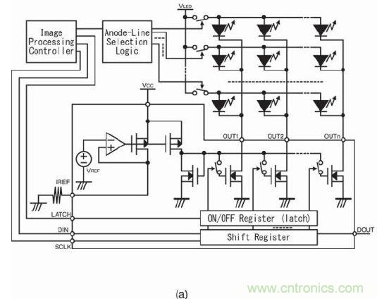 從圖2可以看出,LED燈的陰極采用當前市場常見的LED驅動器IC驅動。這里要討論LED燈的陽極驅動器電路。陰極采用恒流驅動器有優(yōu)勢,陽極希望也只提供足夠的電壓。但仍需做出如何驅動陽極的重要決定!