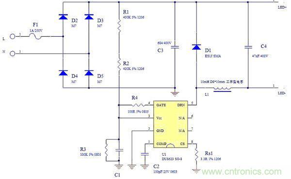 圖3:DU8623球泡燈應用原理圖