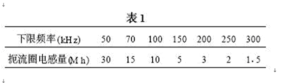 L1用于濾除低頻共態噪聲,它的磁芯一般采用高頻鐵氧體磁性材料。由于鐵氧體磁性材料沒有渦流的影響,高頻率仍能保持較高的導磁率,缺點是弱磁場容易飽和,但是L1在繞制時采用雙線并繞的方式,即在一個閉合磁路的磁芯上繞制相同電感量的兩個繞阻,電源電流經兩個繞阻產生相反磁通,相互抵消,防止磁芯飽和。對于共態噪聲?;ジ邢禂诞a生磁通相互增強,即電感量增強,能很好的抑制共態噪聲。L1的共態扼流圈的電感量一般由所要抑制的噪聲電平的下限頻率(DC/DC轉換模塊的基波頻率)確定,下限頻率越高,所需要的電感量越小,粗略對應值見表1。