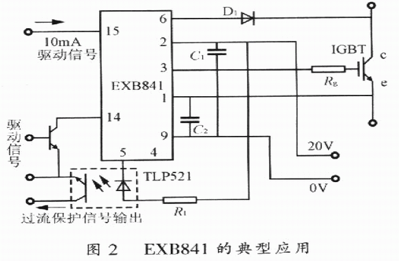 (2)EXB84l外周電路簡單,僅需單電源供電,是最早進(jìn)入我國市場的ICBT驅(qū)動模塊,技術(shù)成熟,應(yīng)用廣泛;