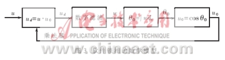 軟件鎖相原理是用計算機軟件實現上述鎖相過程。將圖2的分頻系數N取1,設輸入u=Mcosθ,輸出u0=M0cosθ0,其中θ和θ0是隨時間而變化的量,則