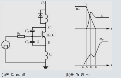 圖1 IGBT開關(guān)等效電路和開通波形