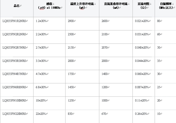 表1:功率電感LQH系列產(chǎn)品線一覽