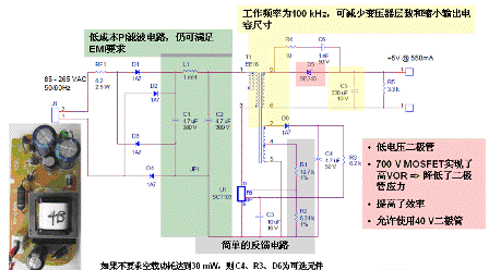 除了可以省去光耦器,由于采用無篏位設(shè)計還可以再省去四個元件。除了這些節(jié)省外圍元件帶來的成本節(jié)約,由于采用了優(yōu)化的PI MOSFET技術(shù),適合100kHz工作,還可以減小變壓器的尺寸和成本、降低輸出電容容量,這些都能進一步降低成本。而高于70%的效率,使其可以使用低成本的AWG28電纜。芯片本身的價格也不貴,100,000片訂貨量的單價為0.42美元,今年三月即可實現(xiàn)量產(chǎn)。