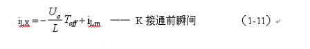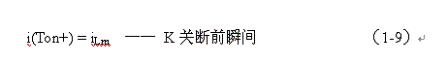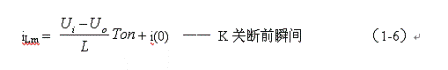 式中i(Ton+)為控制開關K從Ton轉換到Toff的瞬間之前流過電感的電流,i(Ton+)也可以寫為i(Toff-),即:控制開關K關斷或接通瞬間,之前和之后流過電感L的電流相等。實際上(1-8)式中的i(Ton+)就是(1-6)式中的iLm,即: