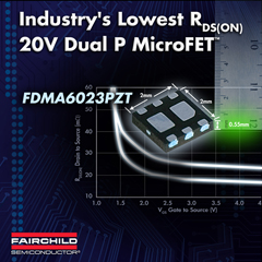 飛兆半導體公司(Fairchild Semiconductor) 為便攜應用的設計人員帶來具有業界最低RDS(ON) 的20V 2mm x 2mm x 0.55mm 薄型MicroFET MOSFET器件。FDMA6023PZT是采用緊湊、薄型封裝的雙P溝道MOSFET,能夠滿足便攜設計的嚴苛要求,采用延長電池壽命的技術,實現更薄、更小的應用。FDMA6023PZT采用超薄的微型引線框架的MicroFET 封裝,相比傳統的MOSFET,它具有出色的熱阻,能提供超卓的功率耗散,并可減少傳導損耗。該器件采用飛兆半導體性能先進的PowerTrench® MOSFET工藝技術,獲得極低的RDS(ON) 值、柵級電荷 (QG) 和米勒電荷 (QGD) — 這些都顯箸減少傳導損耗和提升開關性能。