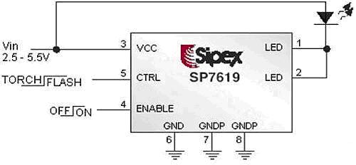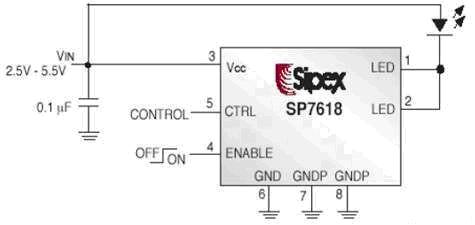 另外,隨著LED技術的改進,Flash LED的工作電壓(Vf)也會越來越低,Vf值在3.4V以下的Flash LED很快會推出,而目前手機鋰電池的關機電壓一般在3.5V,所以日后在閃光燈的解決方案中將不再需要升壓方式,因此Sipex公司推出一批線性的控制 器件,如SP7618和SP7619/SP7619A。