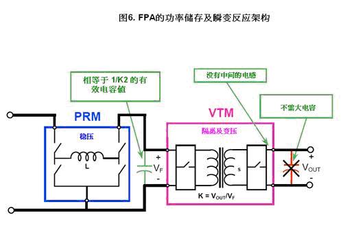 分比式功率架構把DC-DC轉換器的功能重新編排;并以晶片封裝的元件來實現。它的主要元件是預穩壓模塊(PRM)和電壓轉變模塊(VTM)。PRM只有穩壓功能,VTM具變壓和隔離功能,PRM和VTM合起來,就能實現DC-DC轉換器的功能。