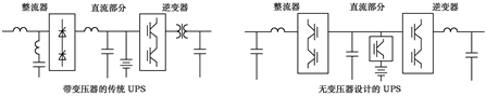 圖1傳統UPS與無變壓器UPS結構示意圖