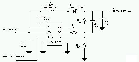 被動矩陣OLED顯示器需要一組正電壓來做為它的電源或偏壓,這組正電壓和液晶顯示器所使用的電壓非常類似,它必須提供低功耗和高效率,解決方案的體積也要很小。隨著顯示器尺寸和分辨率不同,OLED驅動組件需要15V到20V之間的電壓,因此電感式升壓轉換器是最理想的解決方案。[page]