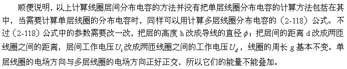 當(dāng)變壓器的線圈為多層時(shí),我們只需反復(fù)利用(2-117)式來對(duì)相鄰兩層之間的分布電容獨(dú)立進(jìn)行計(jì)算,然后把結(jié)果相加即可。如果一定要寫出計(jì)算多層線圈分布電容的表達(dá)式,則變壓器多層線圈的分布電容可表示為: