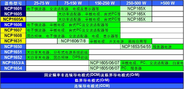 表1:針對(duì)不同輸出功率等級(jí)及應(yīng)用的安森美半導(dǎo)體PFC控制器。