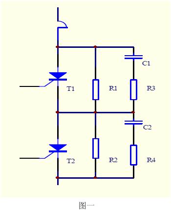 通常使用兩只晶閘管串聯(lián)工作以解決單只晶閘管耐壓不足的問題。這就需要解決晶閘管的工作電壓平均分配問題,包括靜態(tài)均壓與動態(tài)均壓。靜態(tài)均壓可采用無感電阻串聯(lián)分壓的方式解決;動態(tài)均壓比較復(fù)雜,這是因為:元件參數(shù)dv/dt的差異以及反向恢復(fù)時間的差異導(dǎo)致開通與關(guān)斷過程中元件承受的電壓分配不均,極端情況可使支路電壓全部加在一只晶閘管上。