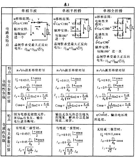 通過這組單相、三相整流電路的歸納表,可幫助學生較快地掌握各種整流電路的結構、電路特點、不同負載時的有關計算公式,為更好地掌握電力電子技術基礎理論知識提供了很好的幫助。