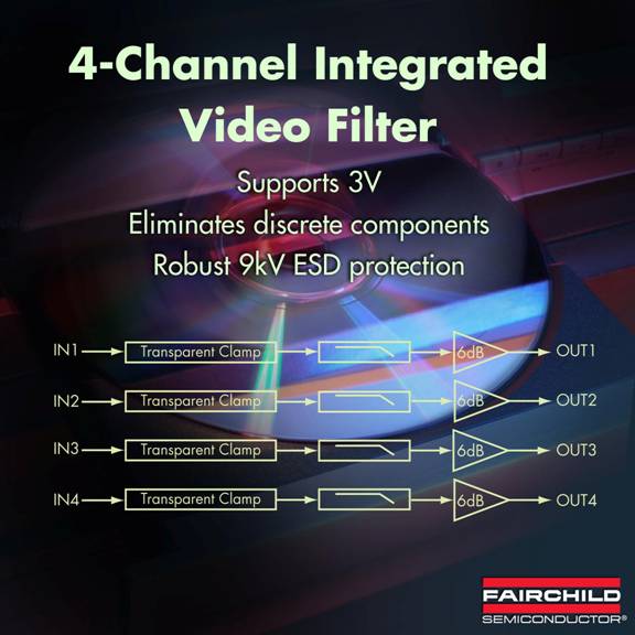 Semiconductor)針對現今許多視頻產品平臺逐步淘汰S-video,以及四通道正在成為標準輸出配置之市場趨勢,推出支持機頂盒和DVD播放器市場的四通道集成式視頻濾波器產品FMS6144A,幫助設計人員適應這一轉變。