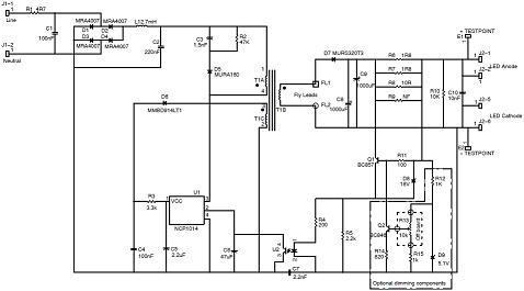 圖2:NCP1014LEDGTGEVB電路圖