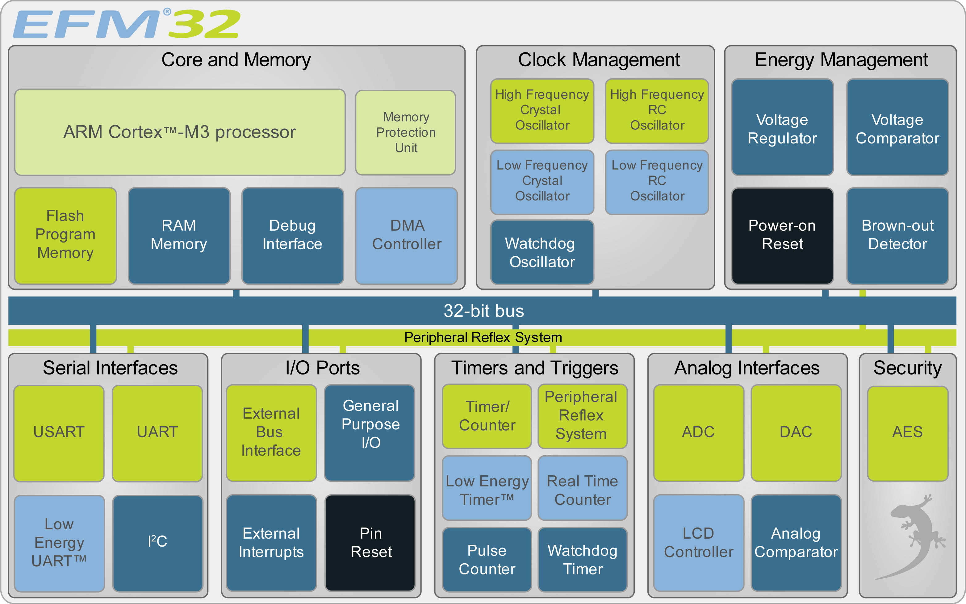 圖2:基于EFM32 Gecko 微控制器的Energy Micro的ARM ®Cortex™- M3芯片架構。