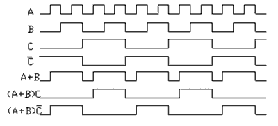 由14級串行二進制計數/分配器CD4020B構成分頻電路,分頻信號來自SG3525A的振蕩器輸出端引腳4。圖4中的A、B、C分別代表振蕩器脈沖經8、9、10級分頻后的波形,其頻率分別為fA=fOSC/28,fB="fOSC/29",fC="fOSC/210"。分相電路由單片兩輸入端四與非門CD4011BC及外圍器件組成,將信號ABC邏輯組合成逆變橋所需要的驅動脈沖(A+B)C與(A+B)C信號。該驅動信號具有共同死區,信號頻率約為50Hz。
