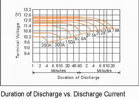 上圖是蓄電池生產(chǎn)廠(chǎng)家提供的150AH/12V蓄電池放電曲線(xiàn)。在實(shí)際使用時(shí)根據(jù)不同的負(fù)載電流選定不同的放電終止電壓。在該放電曲線(xiàn)中,以10小時(shí)放電和5小時(shí)放電曲線(xiàn)為例,對(duì)于10小時(shí)放電(負(fù)載電流為15A)來(lái)說(shuō),如果放電到終止電壓11V(44V),此時(shí)蓄電池放出的容量大約為100%。一般情況下,為了保護(hù)蓄電池盡量避免其深度放電,放電深度最好≤80%,終止電壓在46V左右,放電時(shí)間約為8小時(shí)。對(duì)于5小時(shí)的放電率來(lái)說(shuō)(負(fù)載電流為25.2A),終止電壓10.8V(43.2V)放出100%容量,在實(shí)際使用時(shí)放電深度≤80%,終止電壓在45.6左右,放電時(shí)間為4小時(shí)。