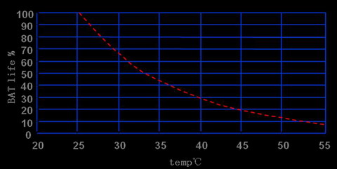 圖2溫度對(duì)蓄電池運(yùn)行壽命的影響