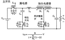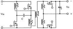另外,如圖3所示,在采用絕緣變壓器的場合,研究人員還提出了將有源鉗位電路嵌入推挽式轉(zhuǎn)換器中的方案,可在采用48V輸入和1.2V/70A輸出的條件下實現(xiàn)高達91%的效率。上面講到的幾種電路方式基本上都是一段式結(jié)構(gòu),最近,出于進一步提高效率的考慮,人們正在加緊研發(fā)兩段式結(jié)構(gòu)的轉(zhuǎn)換器。就普通的轉(zhuǎn)換器而言,采用兩段式結(jié)構(gòu)將導(dǎo)致效率下降是人所共知的常識,然而,在低電壓大電流轉(zhuǎn)換器中,對輸出進行同步整流是很普遍的做法,因此,如何實現(xiàn)同步整流操作的高效化便成為了關(guān)鍵所在。