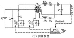 伴隨著開關(guān)電源開關(guān)操作時急劇的電壓和電流變化而產(chǎn)生的浪涌和噪聲將作為傳導(dǎo)噪聲或輻射噪聲傳遞至設(shè)備的外部,從而引發(fā)電磁干擾(EMI)問題。傳導(dǎo)噪聲(特別是共模噪聲)中也時常會產(chǎn)生很大的環(huán)路電流,這是輻射噪聲的起因。近幾年來,ZVS(零電壓開關(guān))和ZCS(零電流開關(guān))等軟開關(guān)(SoftSwitching)技術(shù)作為抑制浪涌發(fā)生的常規(guī)方法已經(jīng)廣為人知。不過,人們在此基礎(chǔ)上又提出了多種能夠兼顧低功耗和低噪聲目標(biāo)的電路方案。圖5(a)示出了采用有源鉗位電路的傳統(tǒng)型轉(zhuǎn)換器電路。鉗位開關(guān)Q2需要在高壓側(cè)進行絕緣驅(qū)動,這里通常采用的是脈沖變壓器。然而,如圖5(b)所示,研究人員最近又提出了一種共源極型有源鉗位電路方案,它將兩個MOSFET開關(guān)的源極端子共接,從而簡化了柵極驅(qū)動。不僅如此,這種共源極型電路方式還有望降低噪聲,經(jīng)實驗測量,其噪聲電平較之傳統(tǒng)型電路下降了約30dB。