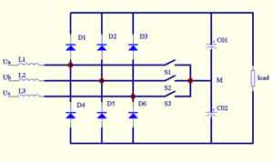 由于電動汽車充電機為非線性負荷,會產生諧波,對電網是一種污染。必須采取有效措施,如功率因數校正或無功補償等技術,限制電動汽車充電機進入電網的總諧波量。為提高功率因數,降低輸入電網諧波,采用有源功率因數校正電路,如圖4所示。它采用三相三開關三電平BOOST電路,工作在連續模式,開關采用兩個MOSFET組合成的雙向開關。圖中,開關S1,S2,S3是雙向開關。由于電路的對稱性,電容中點電位VM與電網中點的電位近似相同,因而通過雙向開關S1、S2、S3可分別控制對應相上的電流。開關合上時對應相上的電流幅值增大,開關斷開時對應橋臂上的二極管導通(電流為正時,上臂二極管導通;電流為負時,下臂二極管導通)。在輸出電壓的作用下Boost電感上的電流減小,從而實現對電流的控制。其控制電路采用三個控制芯片UC3854A,相電壓通過三相隔離變壓器向UC3854A提供同步信號和預校正信號,電流反饋采用霍爾電流互感器,分別控制三個開關,形成三個電流反饋內環和一個電壓反饋外環的多閉環系統。該電路的優點在于結構簡單,每相僅需一個功率開關。具有三電平特性諧波電流小,開關管電壓電流應力小。不需要中線,無三次諧波,滿載時功率因數很高。開關應力小,關斷壓降低,開關損耗低,共模EMI低。