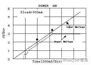 在測試壓差(Dropout)時(shí)不同的廠家有不同的標(biāo)準(zhǔn)。德州儀器(TI)電壓差定義為輸出電壓較其標(biāo)稱值跌落2%時(shí)的輸入、輸出電壓的差值.其它的如,美信(Maxim),圣邦微電子(SGMC)電壓差定義為輸出電壓較其標(biāo)稱值小于100mV時(shí)的輸入、輸出電壓的差值.如圖為圣邦微電子的SGM2007負(fù)載為300mA時(shí)輸入電壓和輸出電壓的曲線。