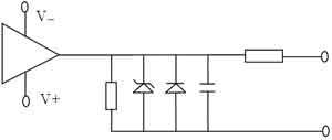 按建造設計規范要求,遙測輸出采用了雙向限幅電路和限流保護措施,保護電路如圖5所示。