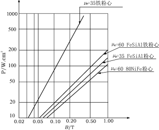 關于磁粉心在PFC電感中的應用,已被很多電源工作者所認可。目前磁粉心材料大致有鐵粉心,Sendust粉心(FeSiAl),坡莫合金粉心(P.P.M),從損耗曲線上可以看出,P.P.M(μe=60)及Sendust(μe=60)和鐵粉心(μe=35)相比,前二者約為后者的1/10~1/6,因此,鐵粉心可以排除,無法用作PFC電感材料,除非大大增加體積,降低工作B值。