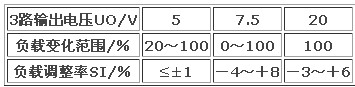 2)多路輸出,穩壓性能好,在最壞的情況下,各路輸出的負載調整率指標見表1,