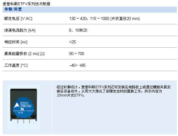 - 愛普科斯熱保護壓敏電阻及氣體放電管