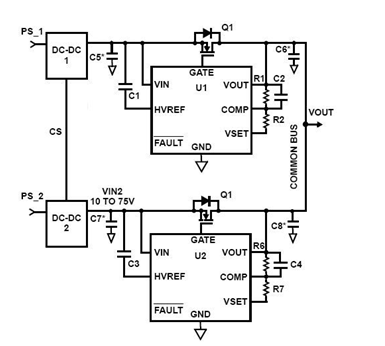 其原理與Drop Resistor相同,使用D1與D2取代電阻的作用,而使用二極管的好處,還可用來防止不同電源模塊之輸出電壓逆流到另一個電源模塊,這在某些電源架構上是需要的。