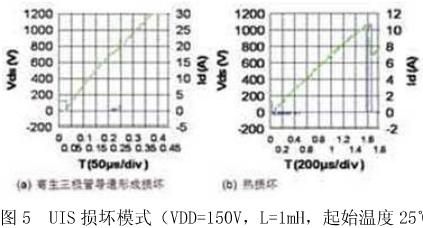 圖3顯示了UIS工作條件下,器件雪崩損壞以及器件沒有損壞的狀態。