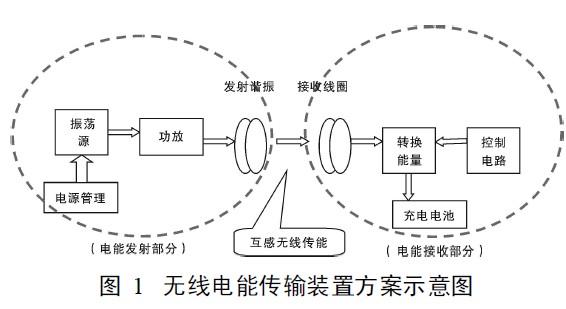 將直流電轉換成高頻交流電,然后通過沒有任何有有線連接的原、副線圈之間的互感耦合實現電能的無線饋送。基本方案如圖1所示。