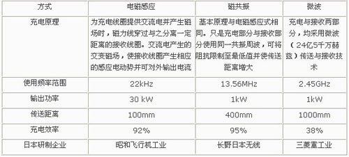 非接觸充電裝置有電磁感應、磁共振、微波三種方式。