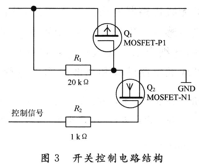 該電源系統(tǒng)各支路的開關(guān)控制主要由場(chǎng)效應(yīng)管構(gòu)成的開關(guān)電路來(lái)實(shí)現(xiàn)。實(shí)現(xiàn)該功能的電路結(jié)構(gòu)如圖3所示。