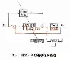基于微處理器的離散滑模控制使逆變器輸出波形有較好的暫態響應,但系統的穩態性能不是很理想。具有前饋控制的離散滑模控制系統,暫態性能和穩態精度得到提高(見圖1),但如果系統過載時,滑模控制器的負擔將變得非常重。自矯正離散滑模控制可以解決這個問題。