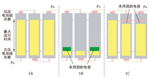 圖1:電池不平衡對于電池容量使用的影響。