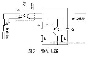 2)當(dāng)光耦原邊無(wú)控制電路的驅(qū)動(dòng)脈沖電流流過(guò)時(shí),光耦不導(dǎo)通,使Q1的基極電位拉低,而功率管柵極上的電壓還為高,所以導(dǎo)致Q1導(dǎo)通,功率管的柵極電荷通過(guò)Q1及電阻R3迅速泄放,使功率管迅速可靠地關(guān)斷。