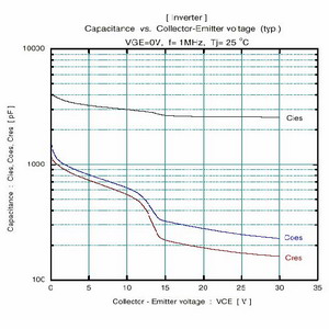 這些電容對橋式變換器設計是非常重要的,大部份的IGBT數據表中都給出這些參數: