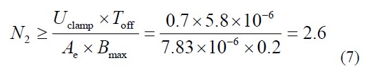 輸入電壓最大值為 Uimax ,開關(guān)管的最大耐壓值為 U dsmax,考慮80%的降額使用系數(shù),則電容 C c兩端電壓Uc 的大小可由式(1)確定。