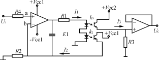 反之,當輸入電壓Ui降低時,運放輸出端電壓降低,通過發(fā)光二極管的電流I1也隨之減小,與上類似,輸出電壓UO=R2I2也隨輸入電壓Ui的降低成比例地減小。